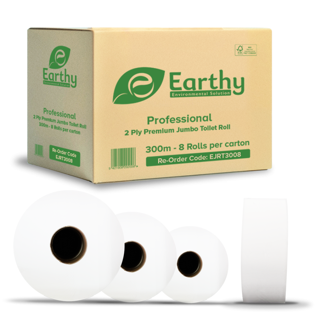 Earthy 2 Ply Jumbo Toilet Roll combines eco-friendly softness and strength. Ideal for high-traffic areas, its long-lasting rolls reduce changes and support sustainable hygiene with every use.